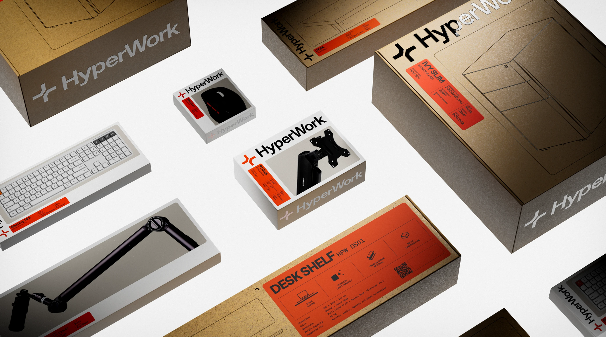 HyperWork始於一個簡單理念:為新一代打造更優質的工作空間。從木製手腕托開始,我們逐步發展出完整的人體工學工具生態系——涵蓋辦公桌椅、模組化配件及周邊設備。全新品牌形象體現HyperWork的進化軌跡:精準、現代,並承襲產品一貫的功能性清晰度。銳利的幾何符號作為系統核心,搭配大膽高效的字標,傳遞出動態平衡與工程紀律的理念。