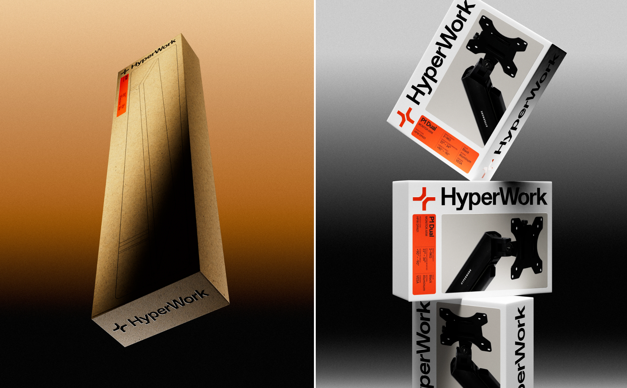 HyperWork始於一個簡單理念:為新一代打造更優質的工作空間。從木製手腕托開始,我們逐步發展出完整的人體工學工具生態系——涵蓋辦公桌椅、模組化配件及周邊設備。全新品牌形象體現HyperWork的進化軌跡:精準、現代,並承襲產品一貫的功能性清晰度。銳利的幾何符號作為系統核心,搭配大膽高效的字標,傳遞出動態平衡與工程紀律的理念。